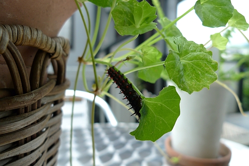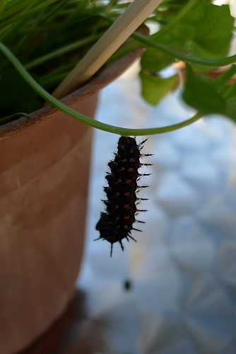 幼虫は、サナギになる前になると、ものすごい速さで歩きまわり、鉢の中をうろうろ・・・。