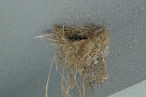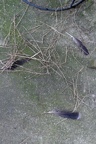 拾い上げて、糸で枝にくくりつけてやりました。