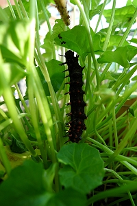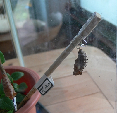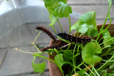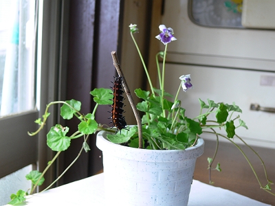 自然界では、スミレの葉っぱで育って、そしてサナギになる時には