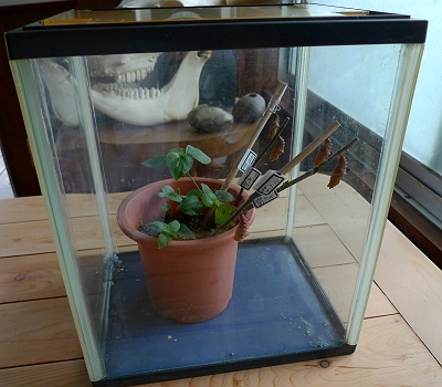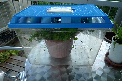 鉢から外に出ていって、ケースの蓋についていたり、床を歩いていたり・・・