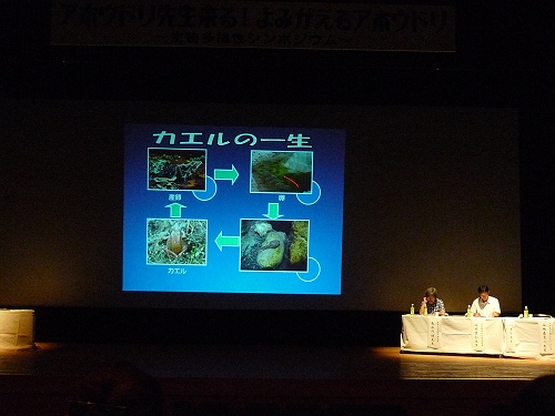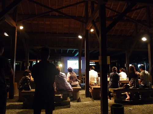 そして、左の場所では虫の観察会に集まっている人・・。