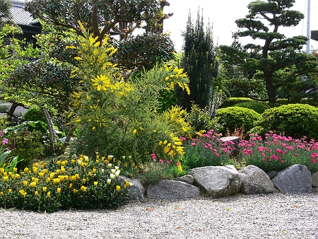 庭を持ち歩き、ブロックの上に置いて・・・・