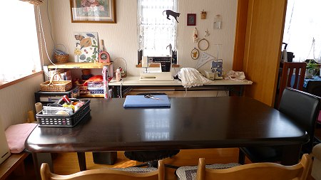naoが勉強机にしていた大きなダイニングテーブルを、
